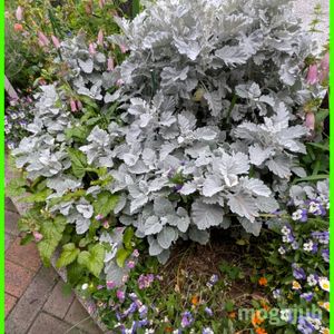 2025年5月27日撮影 横浜市内 散歩で出会えた花達。 葉っぱの色合が特徴のシロタエギク 🟩🟩