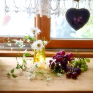 巨峰ワイナリー(福岡久留米市)にて ③−3 2025年8月26日 久留米市田主丸、筑後平野を見下ろせる森の中を歩きリフレッシュして来ました。 ❶青い空に夏雲 ヤブラン 可愛い木製のオブジェ ❷タイサンボク(泰山木) 光沢のある濃い緑色で革質、裏面には褐色の毛が密集しています。迚も肉厚の葉はドライフラワーとしても利用されているそうです。 実は初見です。小さな袋の集合体でその中に種が1〜2個入っているそうです。 =i= リスアカネ ➌ズミの実 リンゴに似た直径1cm未満の小さな実。 バラ科リンゴ属 赤く熟すまでの時期が短く青い実を見れるのは短い間だそうです。艶があり綺麗でした。 ❹クリが沢山落ちていました。 熟れる前のアンズ、枝一杯に生って落ちてるアンズも沢山でした。 クルミの青い実は初見です。 ヤマブドウをショップで購入しました。 こんな綺麗なヤマブドウは初めてです。 一房に130位の実が付いていました。とてもしっかりした実でとても美味しいかったです。 3房1,000円とても食べ甲斐がありました。(picは2房) 巨峰よりこのヤマブドウが美味しいと思いました。 ➎センリョウの実が沢山生っていました。 色んな実の色付くのが待ち遠しいですね〜♡♡