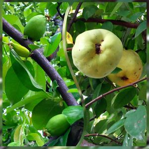 こんばんは~😆 過ごしやすいお天気でした☀️ 今日のお花 ~花梨~ です💛 近所の公園に1本ある花梨の木🌳 今年も成っています。 これから黄色くなるのでしょう💛 左は5月の初旬、 実がなり始めた頃です💚 今年も花を見るチャンスを、 逃してしまいました💧 来期こそは…と💠 11月もどうぞ、 宜しくお願いいたします😉