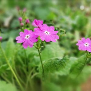 開花ラッシュで 連投させてください ニホンサクラソウ 5 種類育てています 3種類が咲きました 形と 真ん中の白い色が とっても 気に入っています 富士見という 品種です