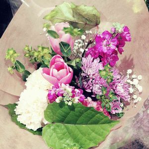 店頭用ブーケ💐^ - ^ カンガルーアイビーの葉っぱも、大きくてアクセント効いて可愛い💓 **作りました^ ^ 3.19