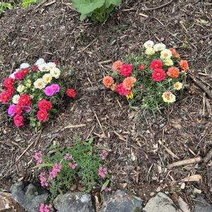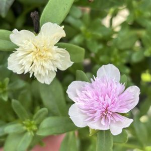 今年初仲間入り 八重咲ポーチュラカ この優しい色味に惹かれて植えてみた 写真は水色🩵と優しいピンク🩷だったのですが…水色は見当たりませんʅ(◞‿◟)ʃ