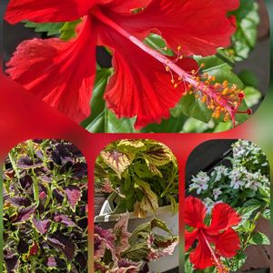 もみじあおい一輪咲いて🌺 赤いハイビスカス🌺 四輪目の子が咲いて🌺 Wの松葉ボタン咲いて🌺 賑やかです🌺🌺🌺🌺🌺 真っ赤な火曜日🏷️