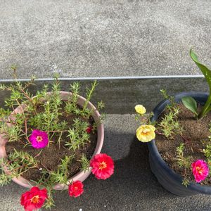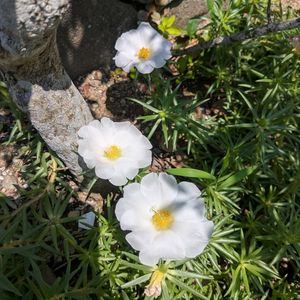 毎日一輪づつ咲いている松葉ボタン。 今日は三輪🥰 白と黄色の苗だけど、黄色はまだ咲きませんねぇ🤔