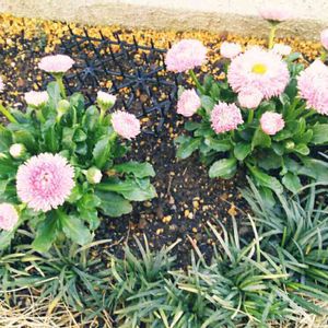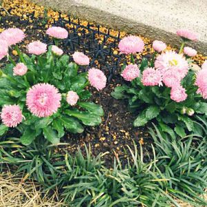 今こんな感じ〜 イングリッシュデージーは天気悪いと咲いてないけど、晴れてくるとパッと開いて可愛い💕