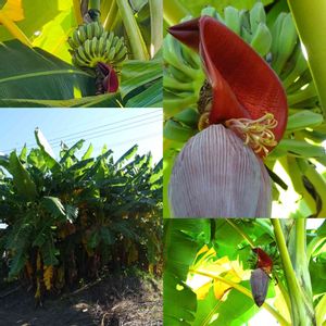 ✨バナナ✨ 散歩道〜♪ いつもと違う道👣 突然バナナの木に出会いました👀🎶 電線に届きそうな位にデッカイ! 木の間から中を除くと バナナ‼️(◍︎˃̶ᗜ˂̶◍︎)✩︎ まだ蒼い果実がビッシリ! お花も咲いててビックリで しばらく見入ってしまいました 初めて見ましたよ〜(*´艸`)♡︎ʾʾ♬ 楽しいお散歩🎶 やめられません🎶