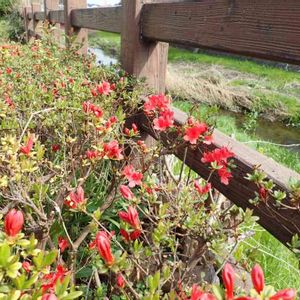 クルメツツジが部分的に咲いています。 数日後には、見事に咲くでしょう。