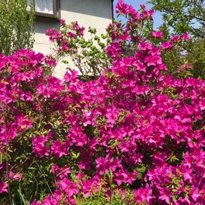 おはようございます☔️ 雨風が強く外へは出れないよ 近所の皆んなも今日はゆっくりお休み出来そうですね〜😊 昨日 撮りました 25年もののツツジですが横幅2m高さ1m70はあると思います 大雪の為タコの足のように曲がって真ん中が後ろに倒れて地面まで でも綺麗に今年も咲いてくれました😄 ありがとう💕