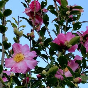 おはようございます サザンカ(山茶花) 昨日は晴天☀️で立山連峰がびかイチの美しさでした😊✨✨✨ ⑤は富山湾越しの立山連峰 うみの青と空の青が目に沁みます (息子pi c) 今日も素敵な一日になりますように♡