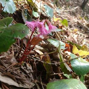 見栄えが悪くて、ごめんなさい🙏 この山野草の名前が知りたくて…。 最初は全体的に綺麗な赤だったのだけど、何故か傷んでしまっていました💦 葉焼けしちゃったのかなぁ この子は何ものなのでしょうか?山に生えていました。葉っぱは硬いです。横這いしてフキのように増えます。 名前がわかりました。イワカガミだそうです😊 ありがとうございました✨