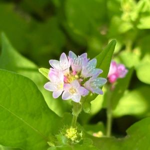 ①②深山谷蕎麦 ミヤマタニソバ タデ科 イヌタデ属 分布 本州 四国 九州 在来種 花期 8~9月 1年草 ・山地の陰湿地に生育 ・葉 互生、翼のない細長い 葉柄がある。 葉身は三角形 質は薄い 暗紫色の八の字形の斑紋 がある ・茎 細く、根元から分枝 し、下部は横に這い、 先は斜 上又は直立し、 高さ15~50cmになる まばらに下向きの 刺あ る 多くは赤紫色を帯び る。 ・托葉鞘 長さ約4mm、 しばしば上部 が緑色の 葉状に丸く広がり、ご く短い縁毛がある。 ・花 白色〜淡い紅色、5深裂 する。 花被片の長さ2〜3mm 雄蕊5~8本、花柱3本 茎頂 および上部の葉腋 の細い枝先に花序柄を出 し、2~5個まとまって つく。 花序柄や小花柄にときに 腺毛がある ・瘦果 3稜形、長さ約3mm 褐 色、光沢がある。 2025/10/12 吾妻山にて撮影 ③④⑤溝蕎麦 ミゾソバ タデ科 タデ属(イヌタデ属) 分布 北海道 本州 四国 九州 在来種 花期 7~10月 1年草 茎の先端で枝分かれした先に、直径 4 - 7mmの根元が白く先端が薄紅色の多数の花を咲かせる。 花弁に見えるものは萼である。 田や畑のある地域の側溝の中で咲いていました。 🏷️今日のお花 2025/10/22 佐伯区五日市にて撮影