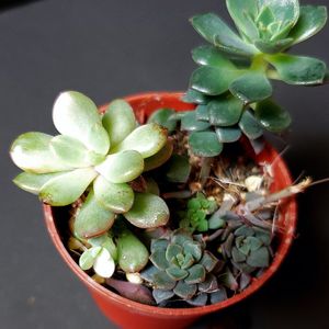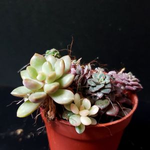 昨日のロゲルシー錦を植えてる鉢、去年の春に弱ってる子達を集めて療養鉢にしてたんですが、みんな元気になってなんかそれなりの寄せ植え鉢になってきました( ꒪⌓꒪)