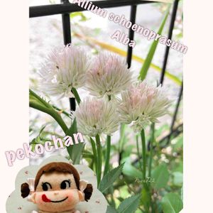 うふふ💕 はなこさん❤︎華ちゃんさん❤︎PIROさん主催の 🏷ペコちゃん祭りに参加します🍬(๑´ڡ`๑)🎶 ペコちゃんのほっぺと同じくらいの🍑 ほんのり桃色ちゃんが宇部小町の下で ひっそりと咲いていたの💕 今まではこの白いチャイブがあまり咲かなかったので こんなに可愛い子だと思わなかった💓 移動決定だわ─=≡Σ((( つ•̀ω•́)つ