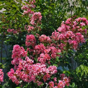 『矮性サルスベリ ペチートサンシャイン 』 矮性なので、小さい庭でも丁度良い✨ 大きくならないように、毎年冬に小さく剪定をしています 毎日暑くて気分が滅入ります サルスベリの強い日差しに負けず咲く姿に、今年も癒しをもらっています💖 ④暑い中ずっと咲き続けている『ノヴァーリス』