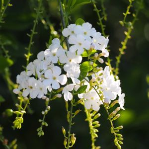 ✼デュランタホワイトラブ クマツヅラ科 もう 黄色い実が成っていました💛💛 庭の花便り 花木 𓂃𓂂𖡼.𖤣𖥧𓈒◌܀ 🏷白い水曜日♡ 参加させて下さい♬