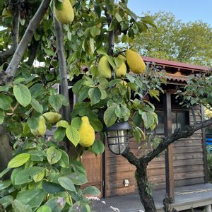今日のお花 カリン お花は春先に咲くので写真ないけれど、とても可愛いピンクのお花です 今はたわわに実がなっています 活用法がいまいちわからず、果実酒かシロップにしても余っちゃうほど💦