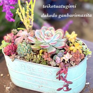 🍀タブロー寄せ🍀 今日もピーカン🌞 多肉さんが増えたのでタブロー寄せに挑戦❣️ ダイソーリメイクシートで、お正月用に買った寄せ植えのタブローを変身(*´罒`*) 実際に作ったのとは上下逆に置いて撮影📸 バランスが難しいわ💦