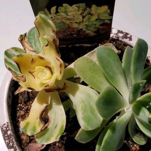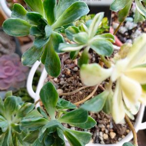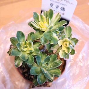 おはようございます(*ᵕᴗᵕ*)⁾⁾ アエオニウム 愛染錦さんです。初めて育てました。💦 多肉植物も、育てるのが、難しい子もいます。奥深いです。ウン♪(,,^ᴗ^,,)🐱🐾