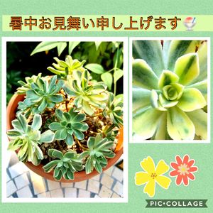 こんにちは🙋♀️ 梅雨が明けてから本格的な暑さが続いていきますので、きちんと水分はとって過ごしてくださいね。 🌱愛染錦🌱 ベンケイソウ科 アエオニウム属 少しずつ育って来ています👍 初めての夏越し😅 休眠期です。 7月半ばから8月いっぱい位まで水はダメみたい 蒸れて溶けるという事故が一番『多肉植物』には多いから。 他の鉢に散水の時に一緒にお水をあげてしまうのよね💦 まずは暑い夏を無事に乗り越えるように見守りま〜す🙋♀️ 皆さまも 頑張ってね(^O^☆♪