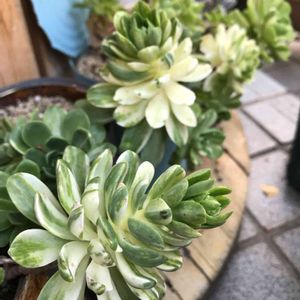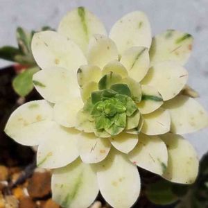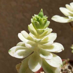 白ーい ✨アエオニウム属~愛染錦✨ 中心が緑色になってきたと 思ったら、花芽がっ❗😖💦 アエオって、花が咲いたら 確か枯れるんだっけ⁉️ 花芽つんだら、生き永らえる かしら〰️⁉️😵💨