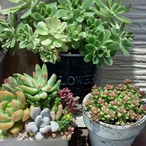 2017-4/22 ☀️ 本日☀️快晴 お気に入りのアエオニウム寄せ植え❣️ 水遣りして日向たぼっこ(#^.^#) チョンパ✂️した親株からも赤ちゃん いっぱい❣️