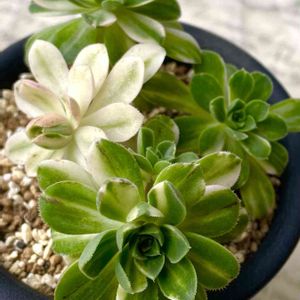 【アエオニウム属 カステロ−パイヴァエ サンカップ】 Aeonium castello-paivae 'Suncup' 和名 愛染錦(あいぜんにしき) 中国名 爱染锦 清水園さんの ネームタグは【愛染錦】🏷 不安定ながらも緑とクリーム色の コントラストが美しい、 カステロパイ−ヴァエの 斑入り種になります カナリア諸島ラ・ゴメラ原産🇪🇸 カリフォルニアの植物農園、 Solana Succulentsの Jeff Moore氏が名前を特定 シノニムは Aeonium castello-paivae variegata Aeonium domesticum f.variegata 和名 黄笠姫錦は、 別種説が強いとの事です ☆Source☆ 【San Marcos Growers】 https://www.smgrowers.com/products/plants/plantdisplay.asp?plant_id=4276