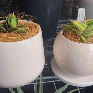 先程投稿した謎のアガベらしき多肉植物と、最近仲間入りしたサムライドワーフさんを植え替えしました🪴 ボロボロやった腐って枯れた葉っぱがいっぱい付いてた謎の多肉植物も素敵な感じにお着替えできた👗💞 いつも有機質の用土しか使ってきてなかったので、最近よく使う様になった無機質の用土をふるいにかけてから使ってきませんでしたw 友達にふるいかけるのを教えて貰って、さっそくトライ🪴 水がジャージャー流れる流れる😆 こんなにも違うのねー‼️ ここまでわかり易く違いが出るなら、そらせねばやわ✨ この面倒なひと手間はめっちゃ大事なひと手間やったって事に気付かせてくれた友に感謝~(*'∀'人)♥*