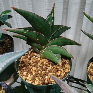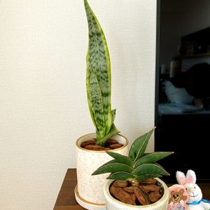 サンセベリア サムライドワーフ バリエガータ(斑入り)です。 入手時よりそこそこ成長してるのでこれからどんな感じで伸びるのか楽しみをですね!