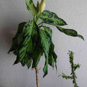 春仲間入り組のアグラオネマ。花が咲きましたが、これ以上雌しべは出てこないようです😅ホムセンで安かった 。でも安いだけ理由があり、水ゴケに発根させ、有機系(ピート(?_?))の土でサンドイッチされたままの鉢でした😓 固まる土🌵でお世話になっている岐○園のです。植え替えに手間かかるけど、苗は良いですね😃 バックは、お隣のサルスベリ🌸