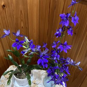 ポタジェの中にも蔓延る千鳥草 お花は綺麗だから✂️して飾りました。 抜いても抜いても、凄い数の花が育ちます。😩 ピンク色が欲しいけど、それはなかなか出て来ません。😅