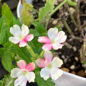 宿根バーベナがひっそりと咲いてます♪ 夏の暑さでだいぶ葉が枯れっぽくなりましたが、少しだけ花が咲いてくれました✨☺️💕