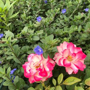 場所を移したら元気が無く咲かなかった薔薇が、咲きました💕🥰 アメリカンブルーも、写りたいみたいで、仲良く写真におさめました💕