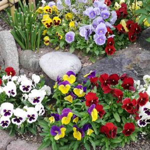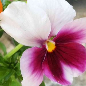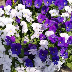 今晩は。 今日は曇りです。庭の芝刈りをしました。☔あめが降る前に、パンジービオラをパチリ撮りました。