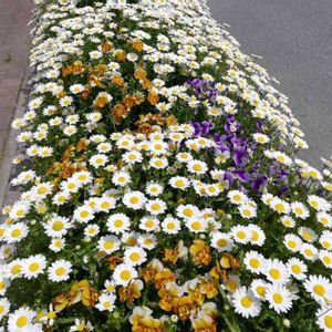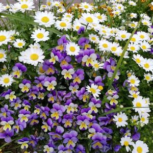 私の好きな花壇のお花です。ノースポール、パンジービオラです。