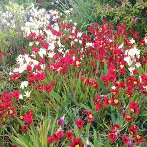 散歩中、綺麗なスパラキシスを撮りました。 庭中スパラキシスで、いっぱいでした。