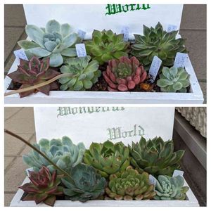 7月に悩んでいた寄植え達。 あまりにもぎゅうぎゅうなので植替えました。 こんなに大きかったのです。 植替えしても、鉢のサイズが足りないですね。(笑)