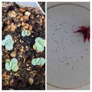 右👉4月に採れた種らしきもの。 左👈今朝の多肉ちゃん達。 初めての実生チャレンジでしたが、何事もやってみるものですね~。
