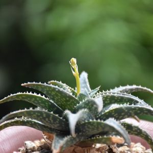 夜分にこんばんは♪ チビアロエ三兄弟です。 一番手前のビトー✖️ドリアンブラックですが、なかなか発根せずに下葉を三枚程落としてしまいました。 早く発根して~~😭