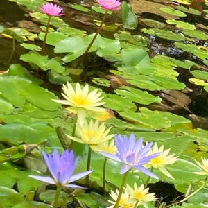 カラフルです華やかなスイレンの花🪷 花茎を長く伸ばして咲くのは、 熱帯睡蓮だそう。 @クレマチスの丘① 三島駅から無料のシャトルバスあり🚌