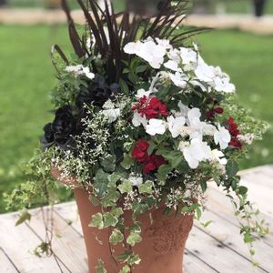 ガーデンフェスタ北海道のメイン会場の「はなふる」へ行きました。七つのガーデンが合わさり一つのガーデンになっていました。素敵な植栽とガーデンデザインに感激しました。ここは「大きなカステラが焼けるお庭」チェルシーガーデンショーで金賞を受賞した帯広のガーデンデザイナーさんたちのガーデンです。 ラムズイヤーが宿根して元気に花を咲かせているのは北国だからでしょうか。ハーブの植えこまれたテーブルも良いですね。