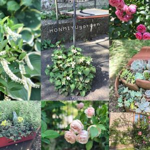 今日は GSで仲良くさせて頂いてる ほんみゆ さんのお庭を見せて頂きましたぁ〜😍💞🎵 私が見に来るということで お花を切らずに待っていてくれたの〜🥺✨ コラージュでまとめてみました❣️その1🐾 左上から時計回りに☘️ 素敵な庭木が沢山植えてあってとってもナチュラル✨〜玄関の近くに野良生えで育ってるドクダミらしいんだけど、まんまるで可愛いの〜😆 来る人みな 可愛い〜というから抜かずにおいてあげてるそうな✨優しい💚〜ポンポネッラ 棗の木に絡めてあってYEGみたい😍こちらはアップ〜割れた鉢をリメイクした多肉マンション🌵〜左は壁誘引のポールズ🌸カミキリムシにやられてしまったそうだけど、シュートがまたしっかり伸びてました🌱右は棗とポンポネッラ〜ビエドゥー 可愛い💕〜ホットプレートをリメイクしたセダム鍋🌵✨ あーー🥰コレコレ❣️GSで見たわぁ〜✨という景色を直に見られて良かったぁ〜✨✨✨