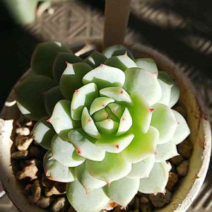 (。・д・)ノオハヨー♪ 静夜♡♡エケベリア♡♡ 連れて帰ってきて、📷🌈撮った後… ぽとっと落としてしまい外側が沢山取れてしまった😭 凄く美人さんだったのに心折れたよね😢