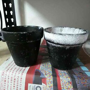 |ヾ(。`・ω・)o|Ю コンバンワ!!! リメイク鉢ちょいちょい出来てきました! こんな私にオーダーして下さり感謝😊 ベースに漆喰2度塗り ベースカラーオールブラックにしようと思ったら… 🤔💡✨ってなって右の思いついた!! かっこいい(゜д゜) しかも土付いたり劣化だったりで、また良い味出ると言う!! そしてちょいちょいゴールド入ってて凄くいい!! この後のデコパージュにアレンジがまた大変😰 だけど同じ物出来ないから楽しいのよ(•ө•)♡ 最後に防水加工!! とにかくしっかり乾かすから最低1日はいじらない((੭ ᐕ)੭ 楽しみだなぁ~