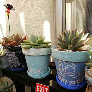 こちらが傷だらけのバイネシーさんのお家♡♡ かっこいい子だから自作リメイク鉢もかっこいい感じに合わせました! まだまだ改善点はあるなぁ(o_o)