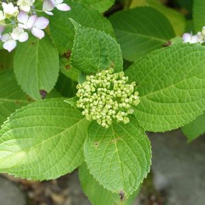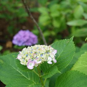 名古屋市の鶴間公園での1ショットです。カマキリが気持ちよさそうにあじさいの上にいました。
