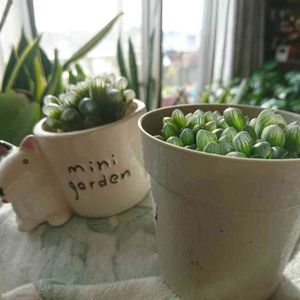今日は‼️ 今日は珍しくオブツーサ 貴方もすなるオブツーサのpic 私も、してみようと思い立ってのpic でも、やっぱりちょっと視点が違うかな? 娘にもらったワンコの鉢のオブツーサ 鉢が一杯になったのと、徒長してネズミ男の前歯のように延びたのでばらして手前の鉢に。 まだ小さいけど一杯になっちゃいました。そして手前の方が色が綺麗ですね。‼️
