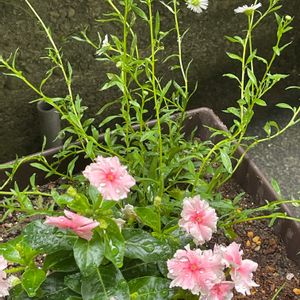 こんにちは😊 猛暑に加え先ほどは宮崎での地震 😨 夏休みで帰省されてる方も多いかと💦 被害が出ない事を祈るばかりです 🙏 🏷木曜日は桃色🍑 フリンジビンカのクイーンチュチュ🩷 花弁の裏側がほんのりグリーンでとっても可愛いです 🥰 ペンタス アップルブロッサム🌸と寄せ植えしています 分岐してあちこち向いて咲いています、真夏でも元気な子ですね🩷 咲き始めは濃いピンク~段々淡い色に(* 'ᵕ' )☆
