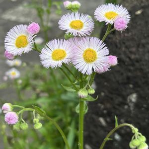 今日のお花:ハルジオン ⭐️ハルジオンとヒメジョオンの 簡単な見分け方の一つ ②のように蕾が首を垂れている のがハルジオン ヒメジョオンは首が垂れない 🏷️雑草と呼ばないで に参加させてください