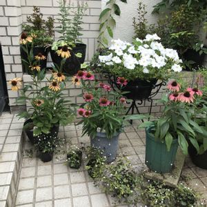 やっと我が家の工事が終わりました。平和が戻りますように🙏 我が家のエキナセアさんたち、 可愛くなってきたので、 投稿しました! 1種類を除いて、 ぜーんぶW咲きエキナセアです。 てか、このGSの文字 小さいですよね?! メガネかけないと見えません…… ただの小さなアリンコ🐜にしか 見えません🤣〜