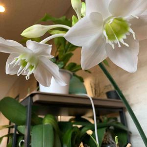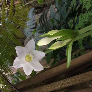 夢の島公園 温室 「アマゾンリリー」 真っ白😊💕💕 ひかえめに咲いてるけど 一際目立つてましたぁ スイセンのお花の形にも似てるけど 大きさはクリスマスローズよりちょっと大きいくらい 3月11日 撮影